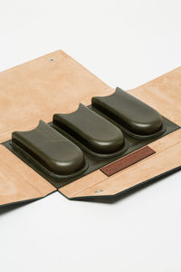 We developed our original leather case with 3 individually watch slots made of leather, hardened by a very special and slow process and with the interior lined in matching suede so your watches will be perfectly protected.