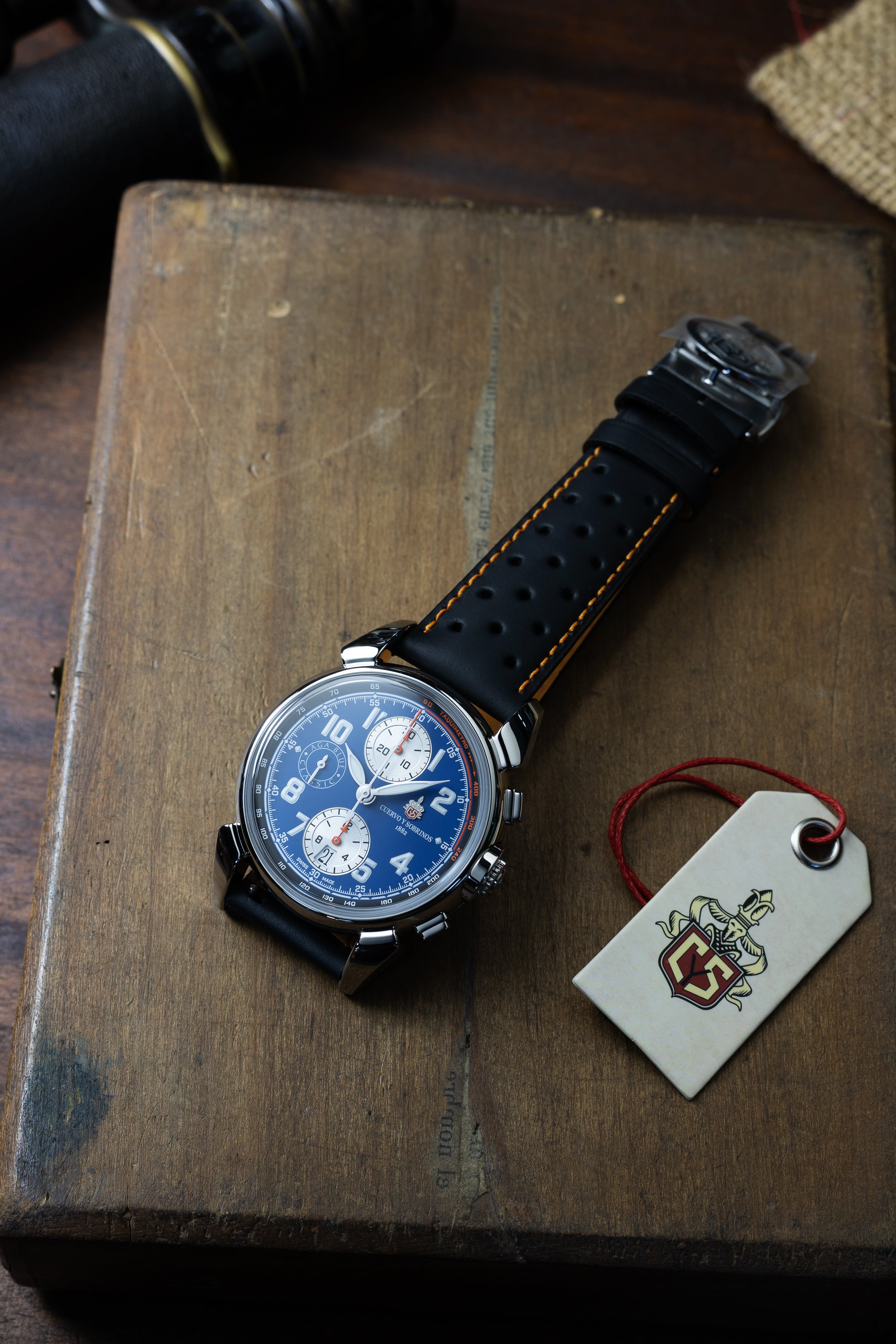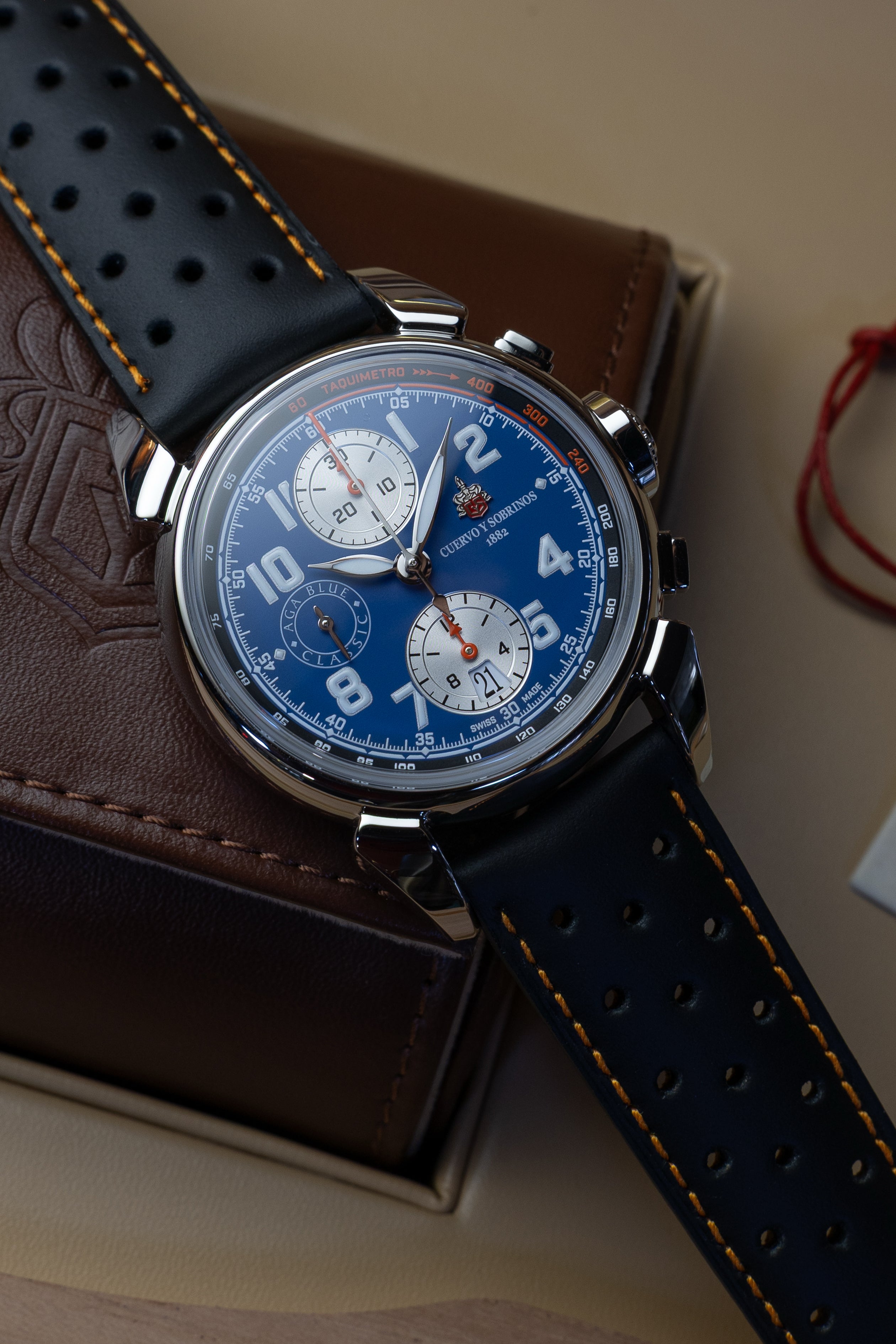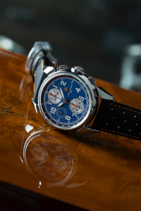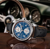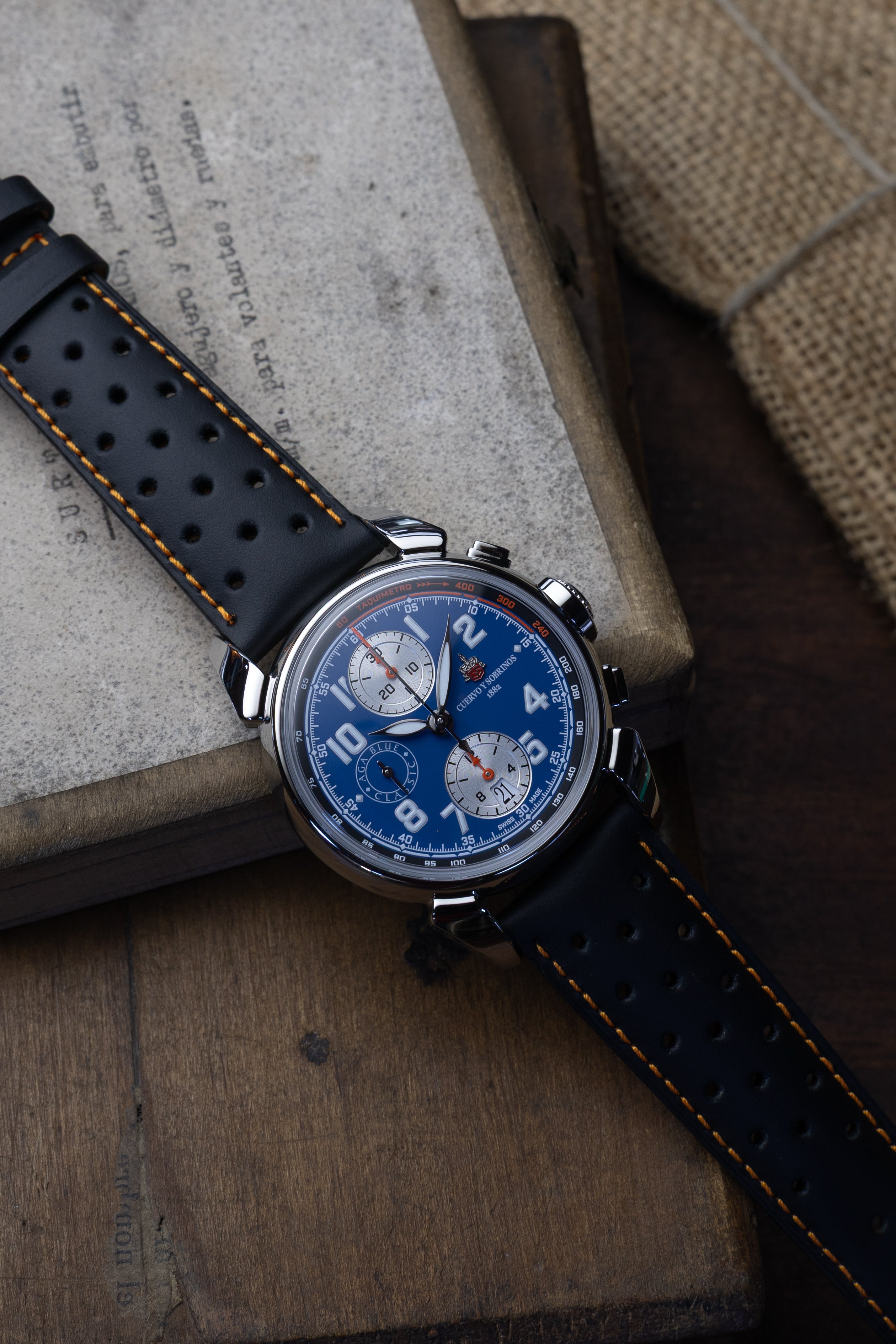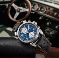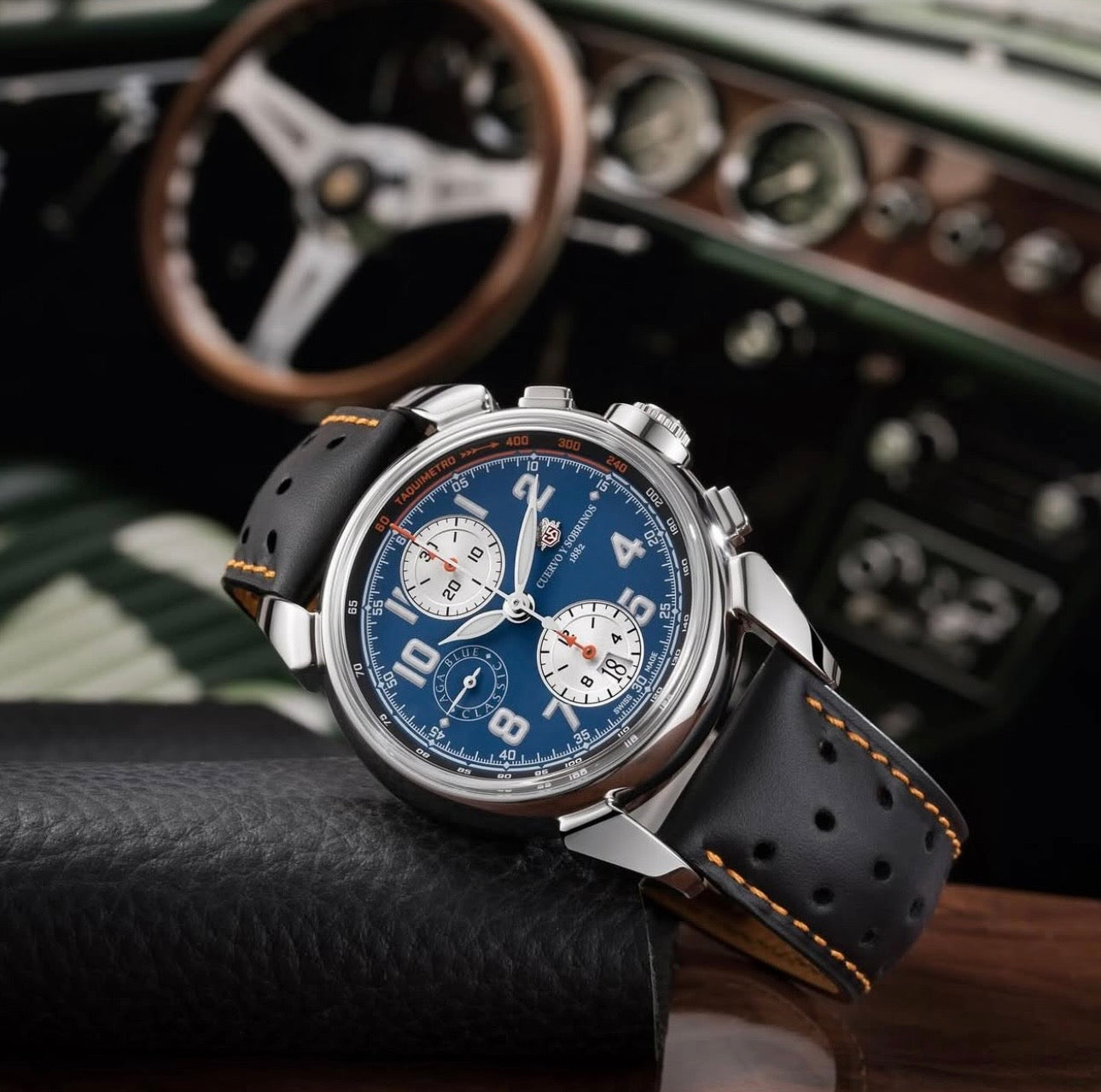 Cuervo y Sobrinos lança sua mais recente obra-prima: o Chronograph Aga Blue Classic - um relógio que captura o romance de viagens de carro vintage, a sensação de assentos de couro desgastados e a alma do artesanato automotivo clássico.