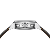 Aço inoxidável, diâmetro 41 mm, altura 15,24 mm, vidrol de safira duplo curvo com revestimento antirreflexo, resistente à água até 5 ATM, parte traseira transparente aparafusada com vidro de safira com logotipo impresso Aga Blu Classic