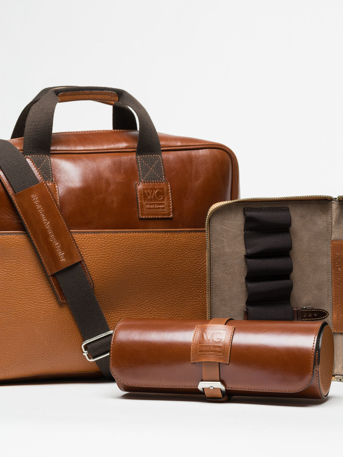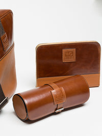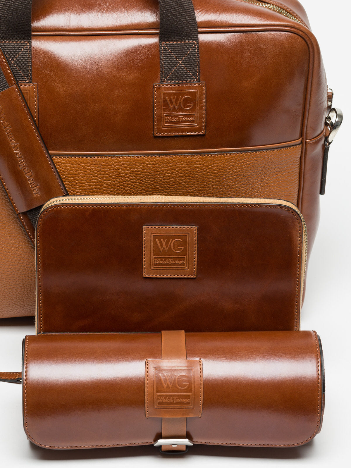 Our DeLuxe Watch Care Package consists in 1 G2G Watch Bag, 1 Strap Case and 1 Watch Roll, all in matching Caramel Brown Leather.