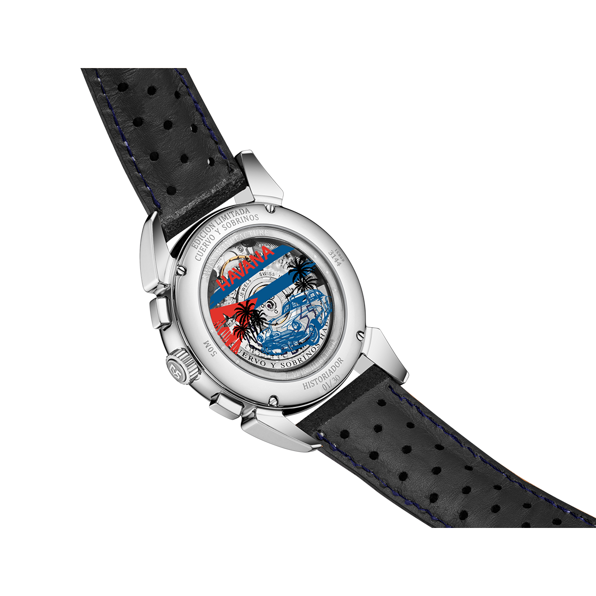 Este cronógrafo presta homenagem aos icônicos carros americanos da década de 1950 que ainda hoje encantam as ruas de Havana, criando a atmosfera única e vibrante da cidade.