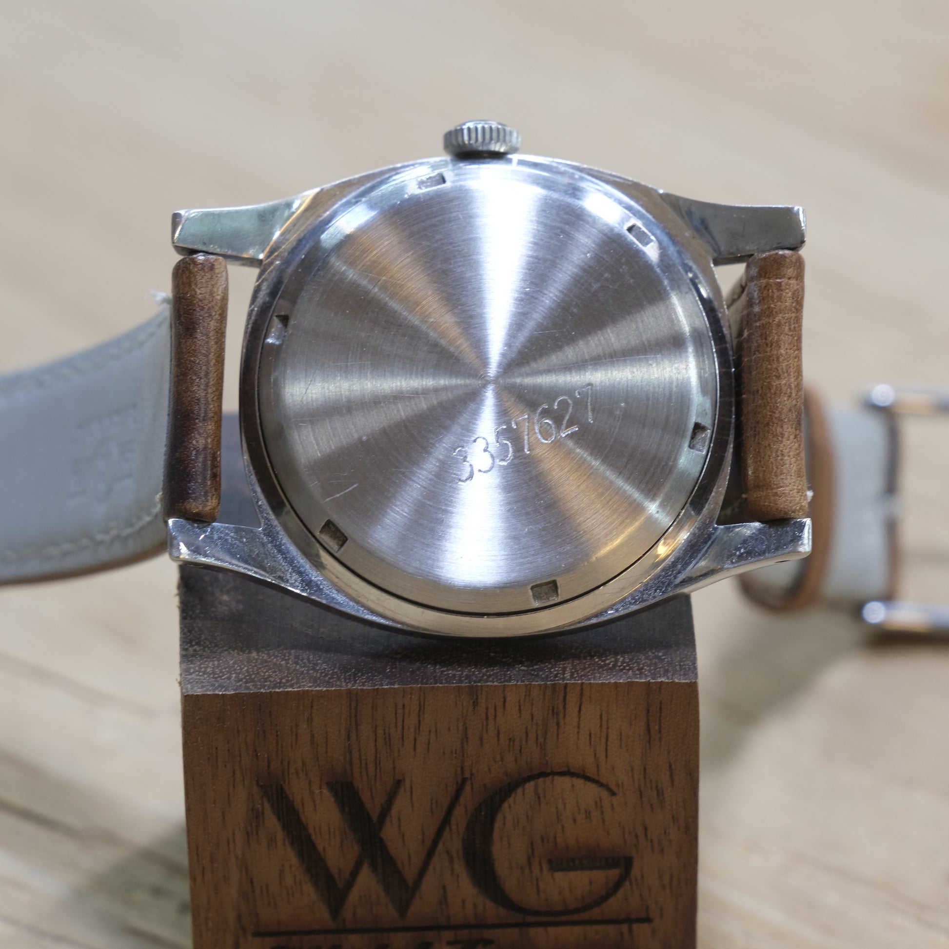 Como qualquer relógio militar, o número de serviço está gravado na parte de trás da caixa, que é para este relógio 3357627.