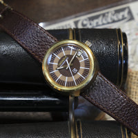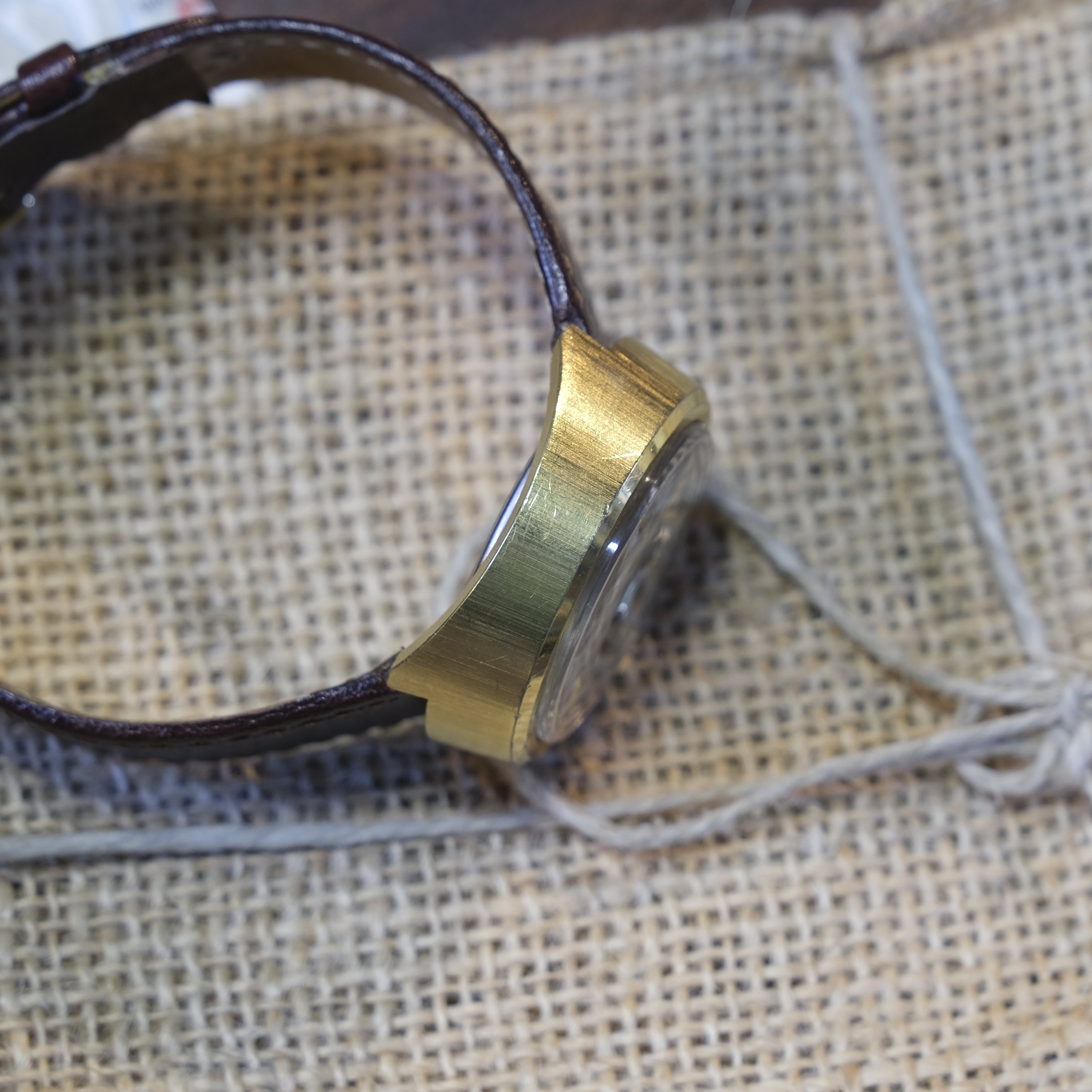 Não parece à primeira vista mas de facto este relógio é um "drivers" watch tendo sido desenhado para ser usado lateralmente no pulso.