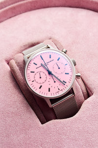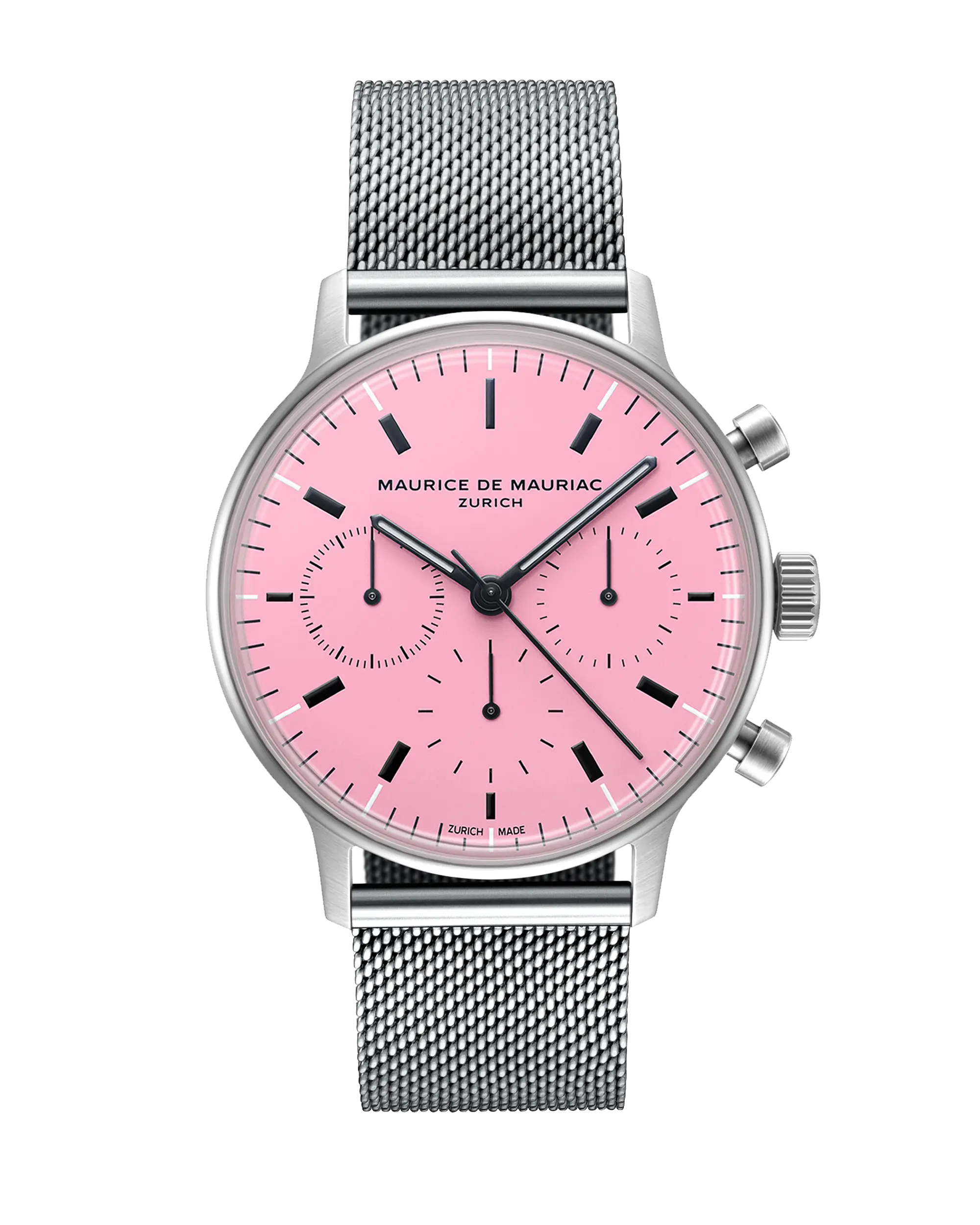 For the Special Edition to Pink October, we exchanged the red watch glass so typical of this watch for one in delicate pink. The dial and watchband also shine in pink.” The signature design of Maurice de Mauriac’s L series – L1, L2 and L3 – comes from renowned Swiss designer Fabian Schwaerzler. “The L3 Cherry Blossom is intended to be a statement, as it were, for those who want to encourage those affected by the disease, as well as those who have accepted the struggle with it,” adds Massimo Dreifuss.