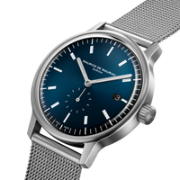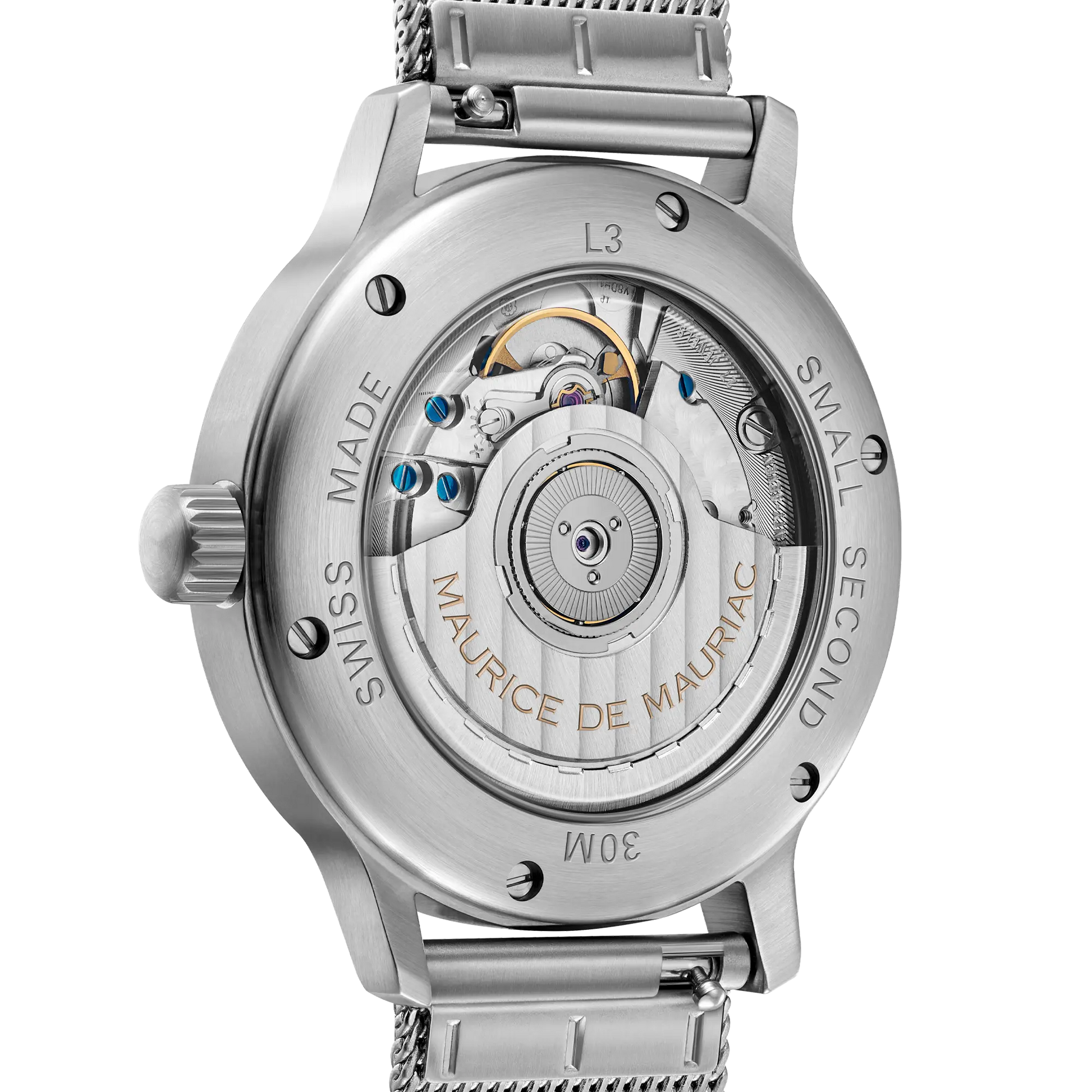 In our see-through cases, a blue anti-reflective sapphire crystal reveals the pulsating calibre. You have the feeling of being able to see and feel the soul of the mechanical automatic movement. This movement is specially refined according to our quality standards. It is an automatic movement with hours, minutes, small seconds and date!