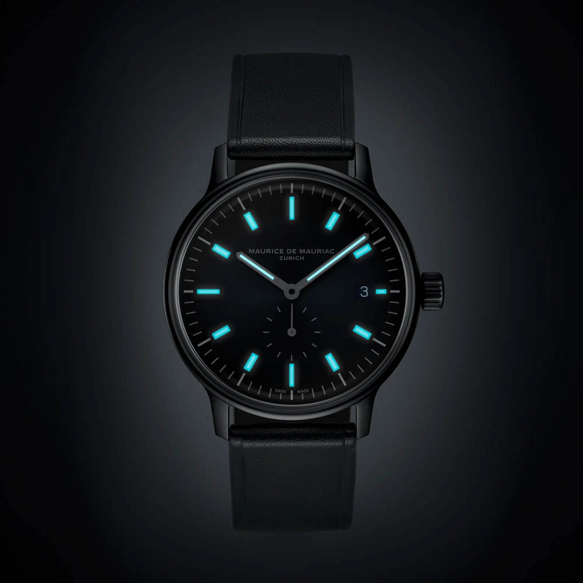 Superluminova is a phosphorescent phosphor and free of radioactive additives. Superluminova is a hundred times brighter than other inactive luminescent pigments. When the luminescent pigments have been excited by daylight or artificial light, they release the absorbed light energy over several hours in the dark. This gives the watch extremely good legibility even in the dark.