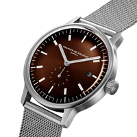 In our see-through cases, a blue anti-reflective sapphire crystal reveals the pulsating calibre. You have the feeling of being able to see and feel the soul of the mechanical automatic movement. This movement is specially refined according to our quality standards. It is an automatic movement with hours, minutes, small seconds and date!
