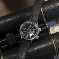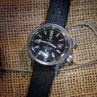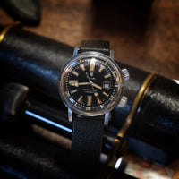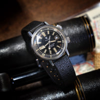 Este relógio está todo original e inclui uma bracelete em borracha Tropic da época.