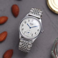 OLD SMITH 90-001 Cream dial with Blue hands and stainless steel bracelet