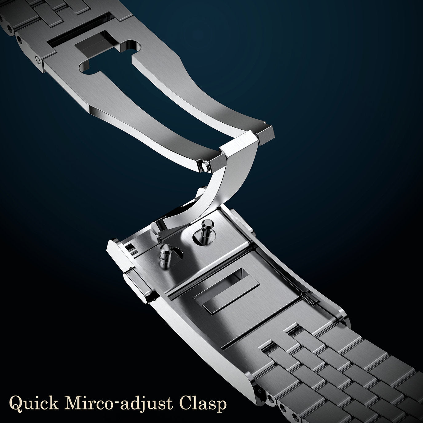 Para maior durabilidade, o relógio é equipado com um cristal de safira abobadado revestido com tratamentos anti-reflexo (AR) e anti-impressão digital (AF) para maior clareza e resistência a manchas. A caixa e a bracelete são feitas de aço inoxidável 316L, o mesmo grau usado em instrumentos médicos. Oferece forte proteção contra ferrugem e descoloração, mantendo-se suave para a pele. A bracelete em si vem com elos finais ajustados, bem como um microajuste sem ferramentas. O relógio também vem com uma pulseira de couro alemão adicional.