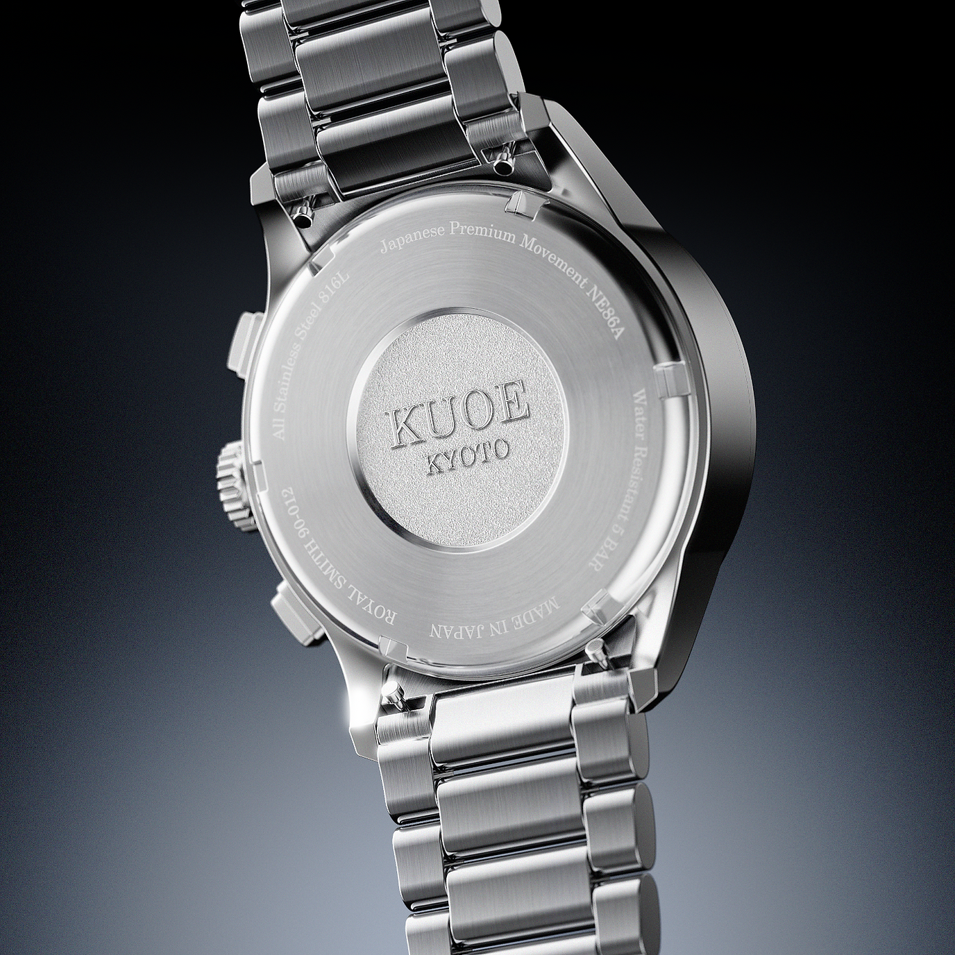 É o nosso primeiro modelo a apresentar um cronógrafo automático, equipado com um calibre de fabricação japonesa, NE86A, um movimento premium desenvolvido pela TMI (Seiko Time Module). O NE86A é um cronógrafo automático bi-compax com um totalizador de 30 minutos. Este movimento high beat oscila a 28.800 vezes por hora (8 vezes por segundo), aumentando a suavidade do balanço do ponteiro dos segundos e aumentando a precisão do relógio.