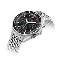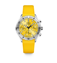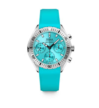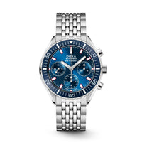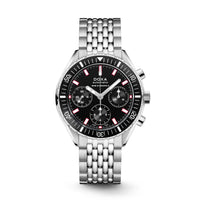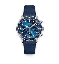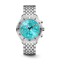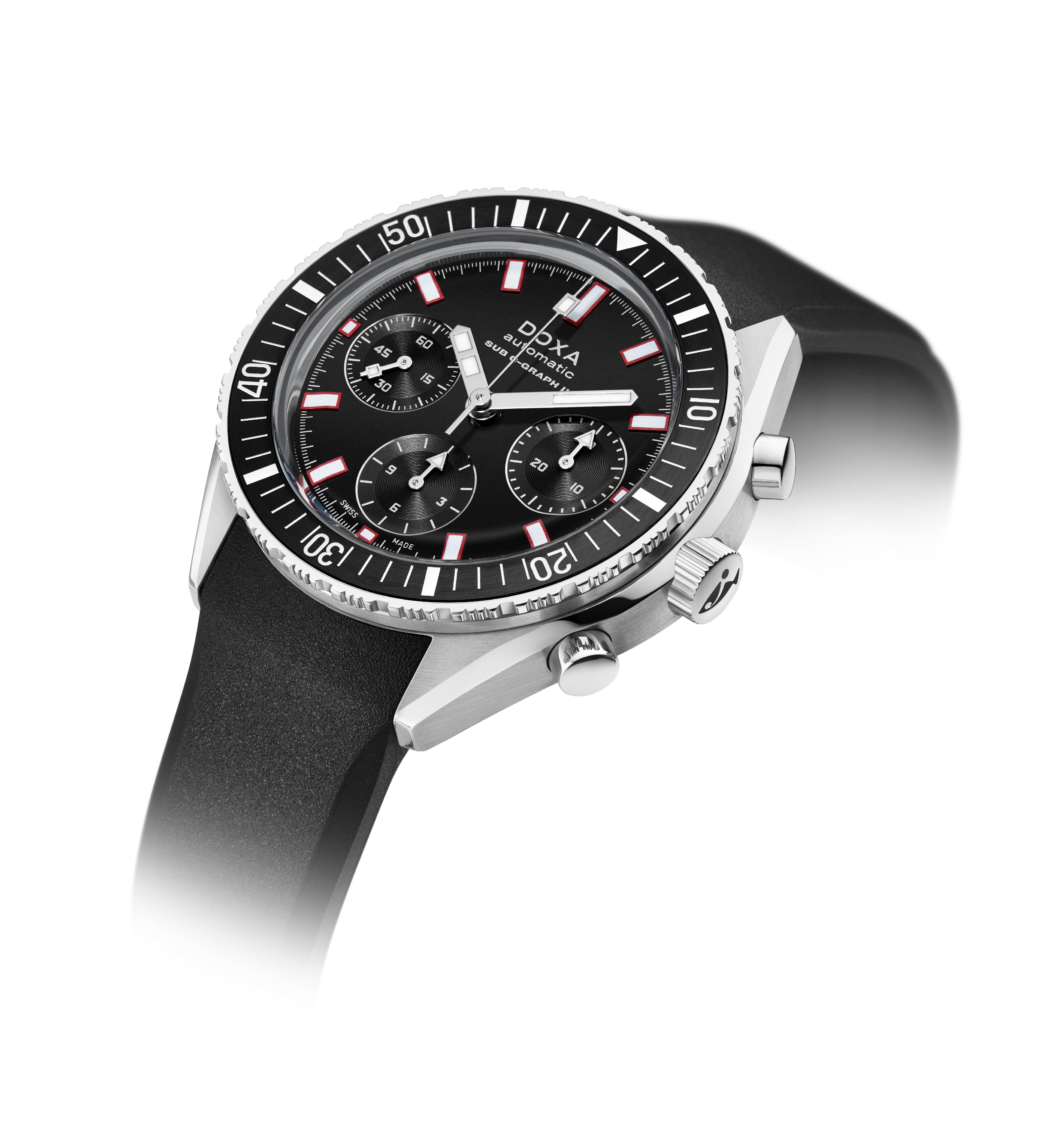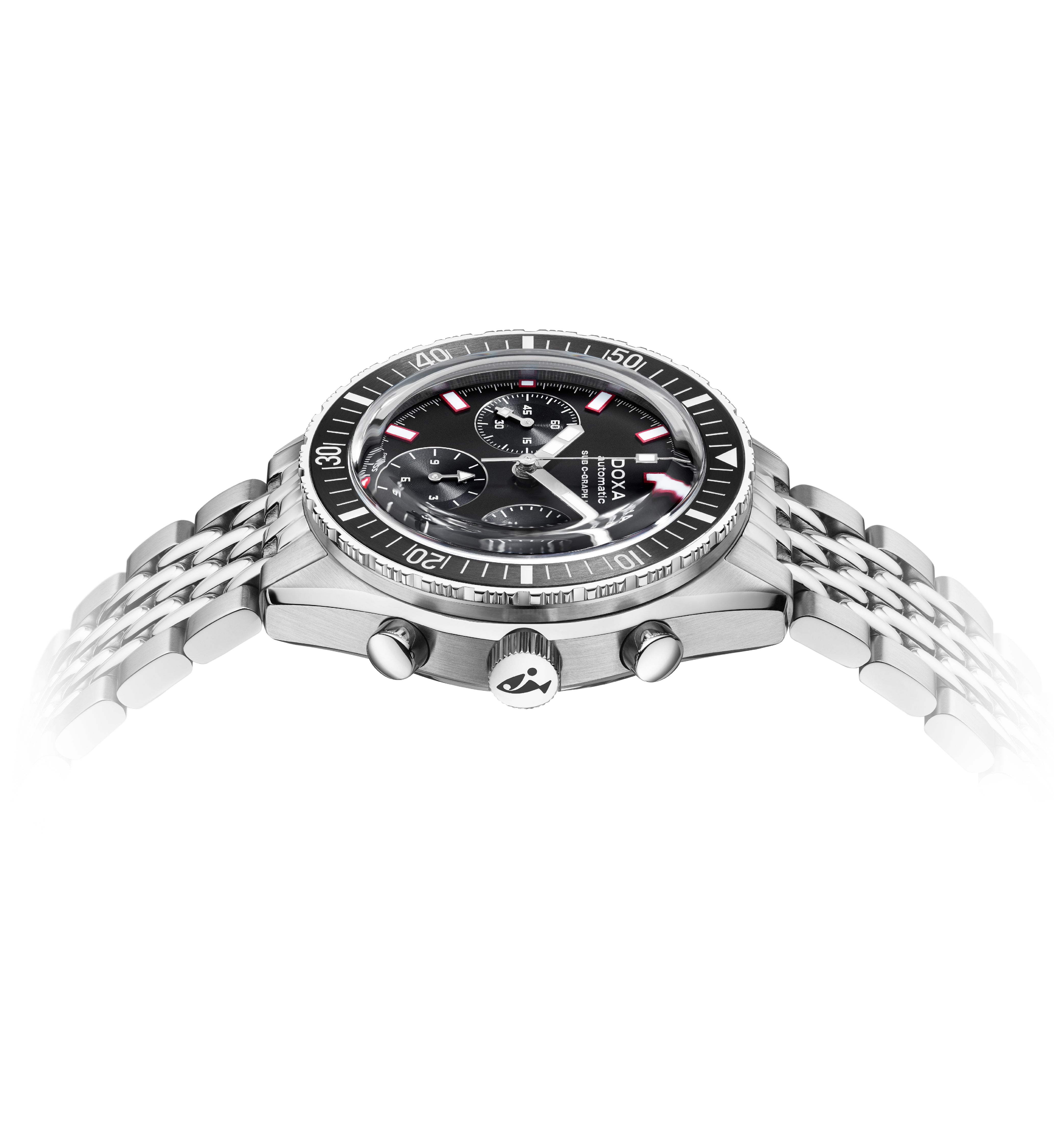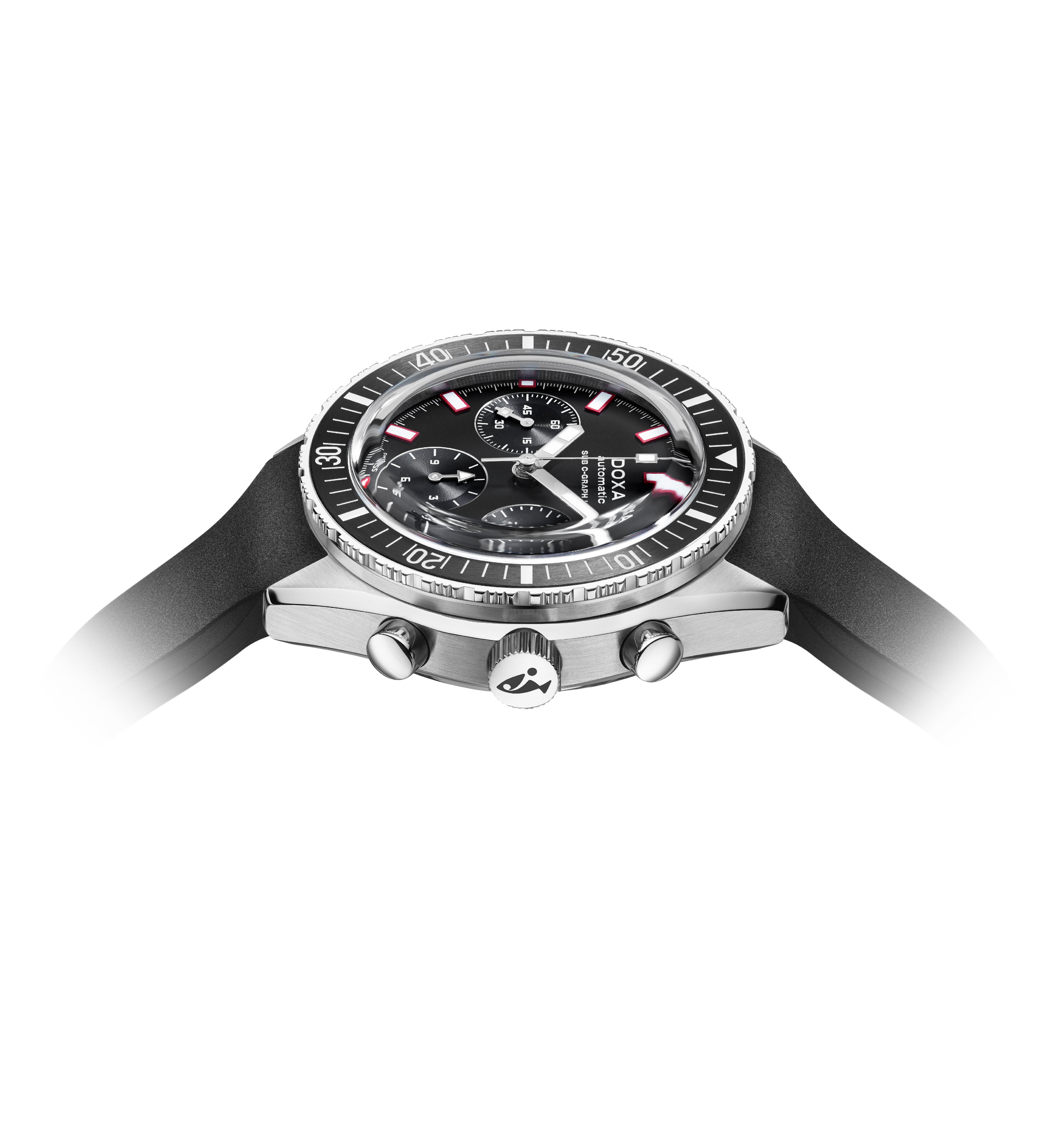 O cronógrafo mecânico automático (28.800 vph, 4,0 Hz, 27 joias) é um modelo Tri-Compax com três contadores para acompanhar os tempos de mergulho e uma luneta de aço rotativa unidirecional com a indicação de minutos destacada em branco Super-Luminova™.