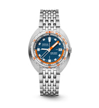O SUB 250T GMT marca o retorno da DOXA à função GMT, combinando a durabilidade do relógio de mergulho com a funcionalidade mundial. A sua caixa de aço inoxidável de 40 mm garante um equilíbrio perfeito entre presença e conforto no pulso, enquanto a coroa aparafusada e a moldura unidirecional com escalas de mergulho proporcionam desempenho de nível profissional. Com uma resistência à água de 250 metros (820 pés), é construído tanto para exploração subaquática quanto para viagens globais.