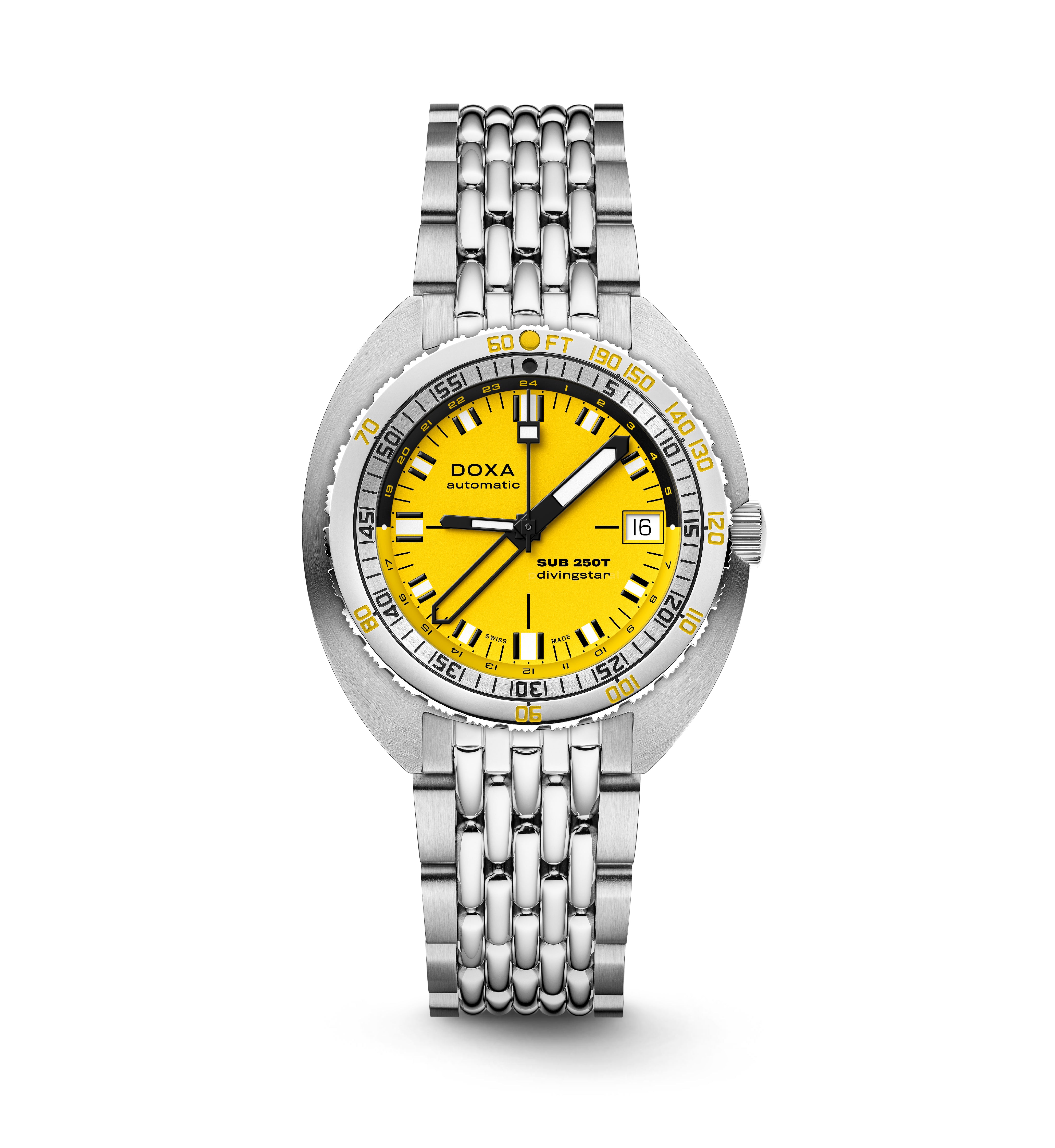 A DOXA renasce a função GMT no SUB 250T GMT, um relógio de mergulho de 40 mm que combina capacidade, conforto e estilo. Disponível em nove cores com opções de pulseira ou pulseira, inclui uma edição vintage Sharkhunter com o primeiro mostrador Gradient da DOXA. Com 18 novas referências, continua o legado de inovação da DOXA para aventureiros e viajantes