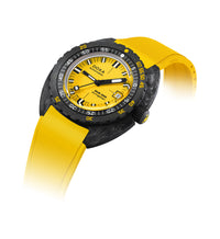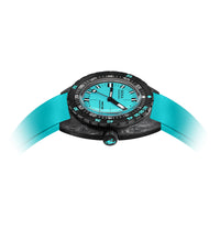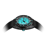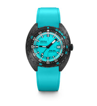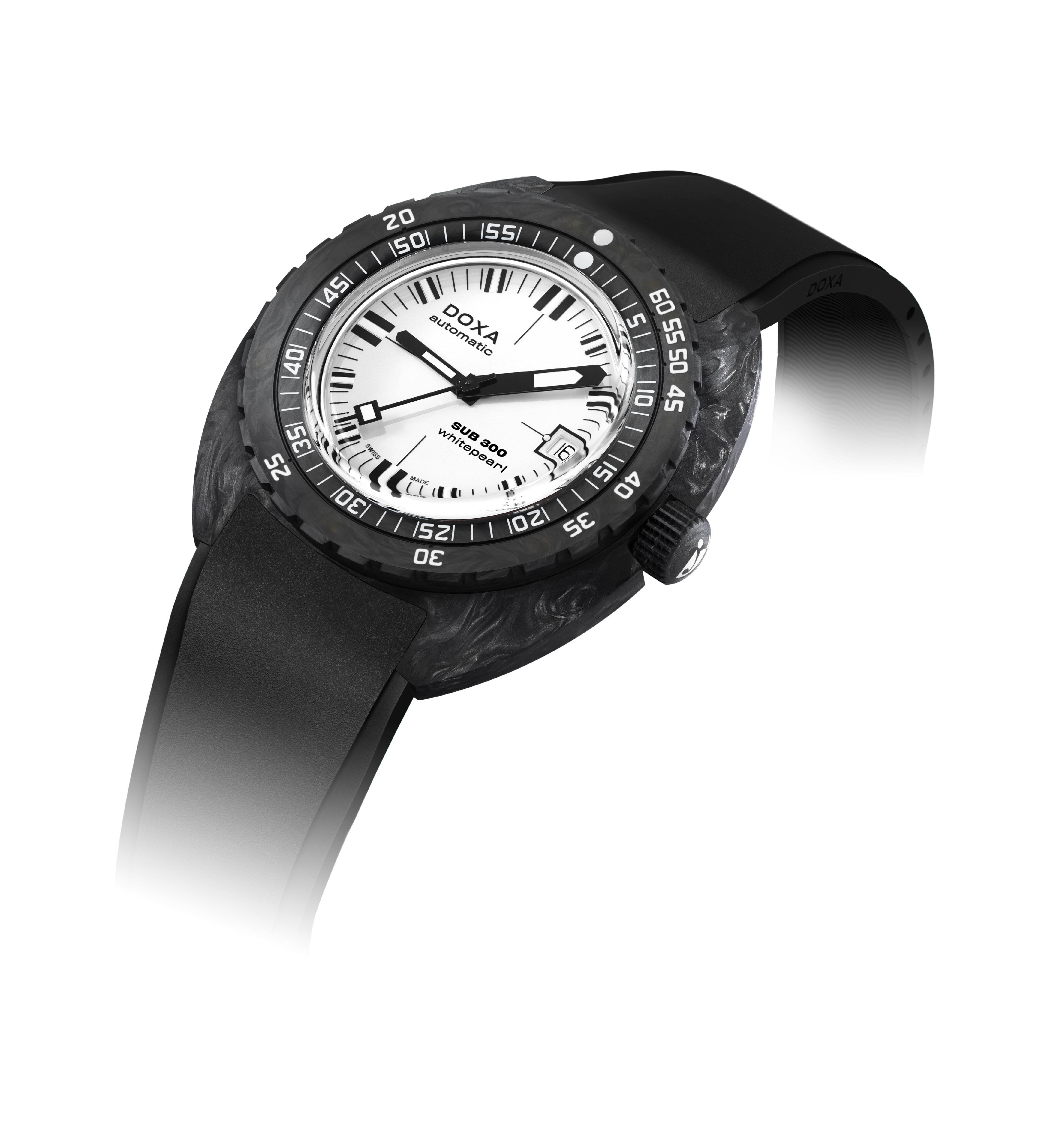 O SUB 300 em carbono está disponível em 8 cores com a opção de uma pulseira de borracha em preto ou na mesma cor do mostrador. Com dicas DOXA distintas em ambos os lados, a bracelete é equipada com um fecho dobrável preto tratado com PVD decorado com o exclusivo símbolo de peixe DOXA. Também tem uma extensão de mergulho ajustável para acomodar a espessura de um fato de mergulho.
