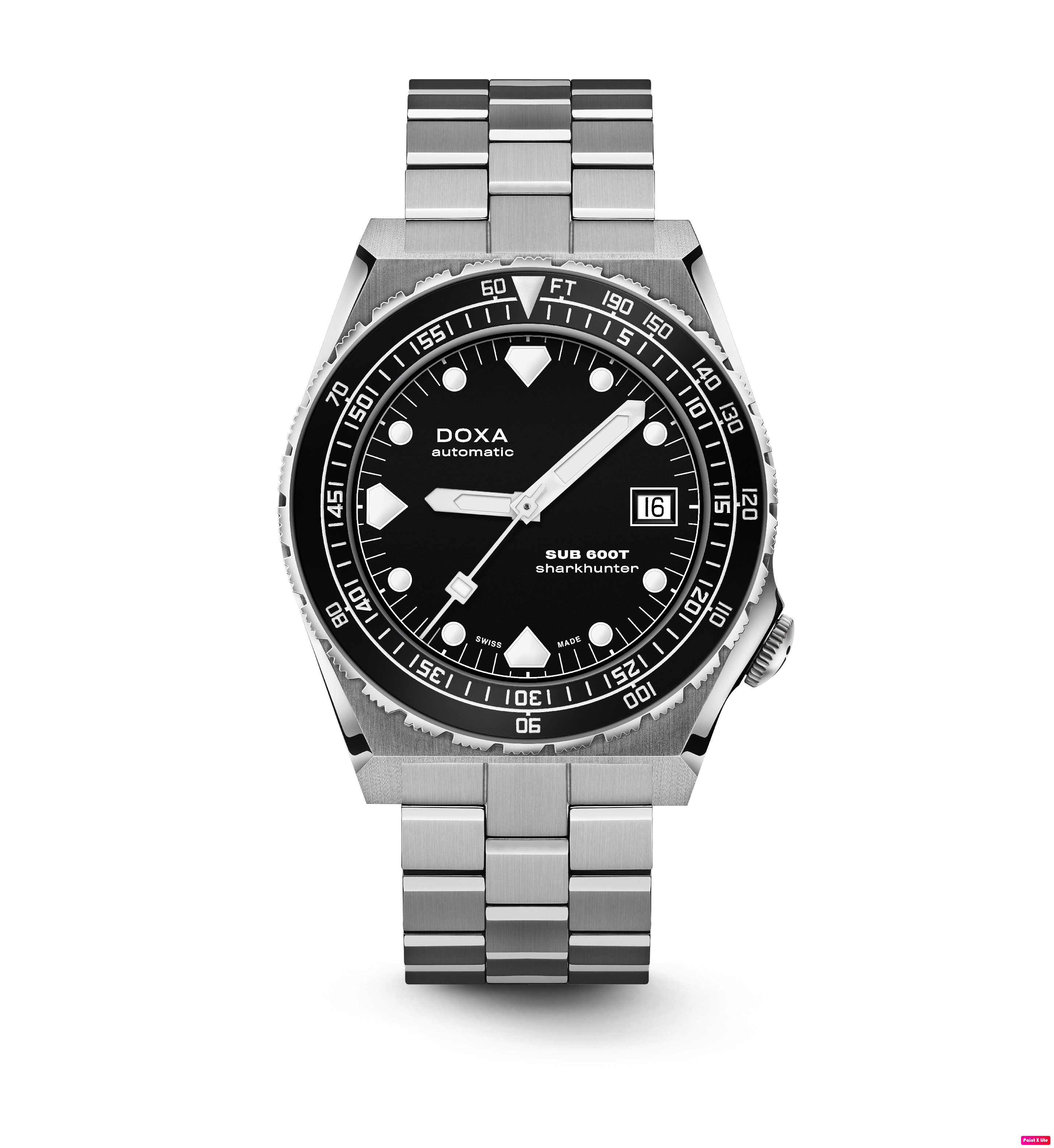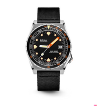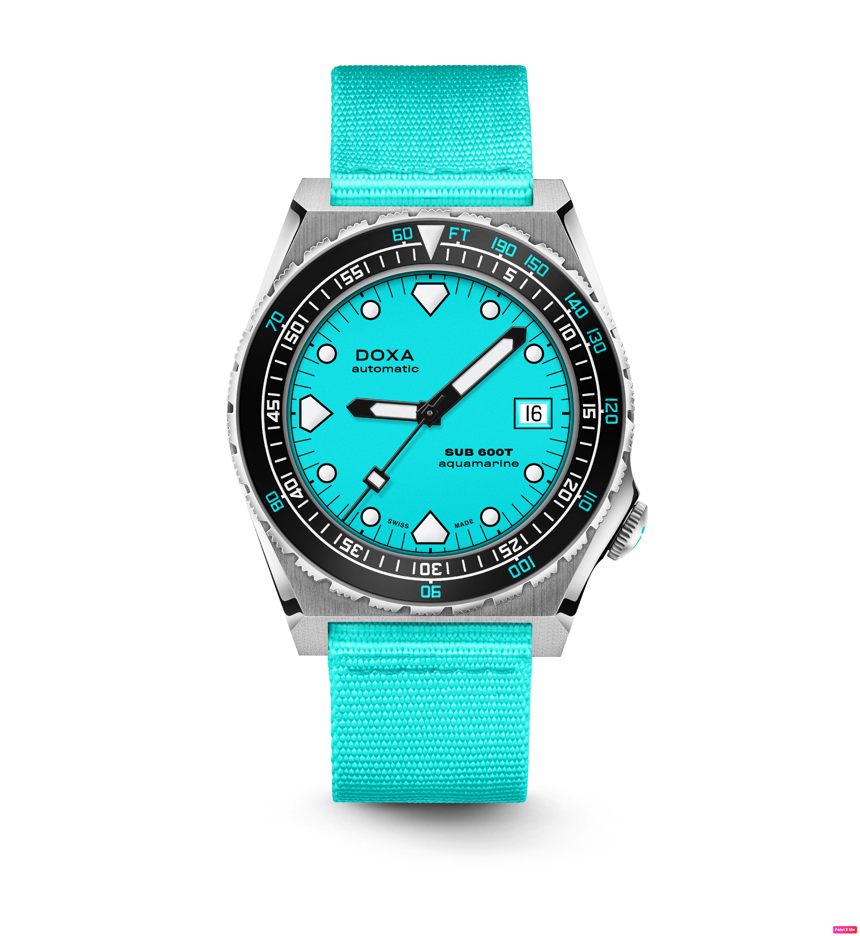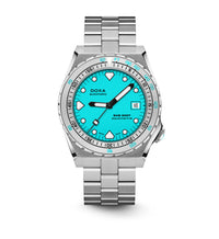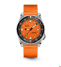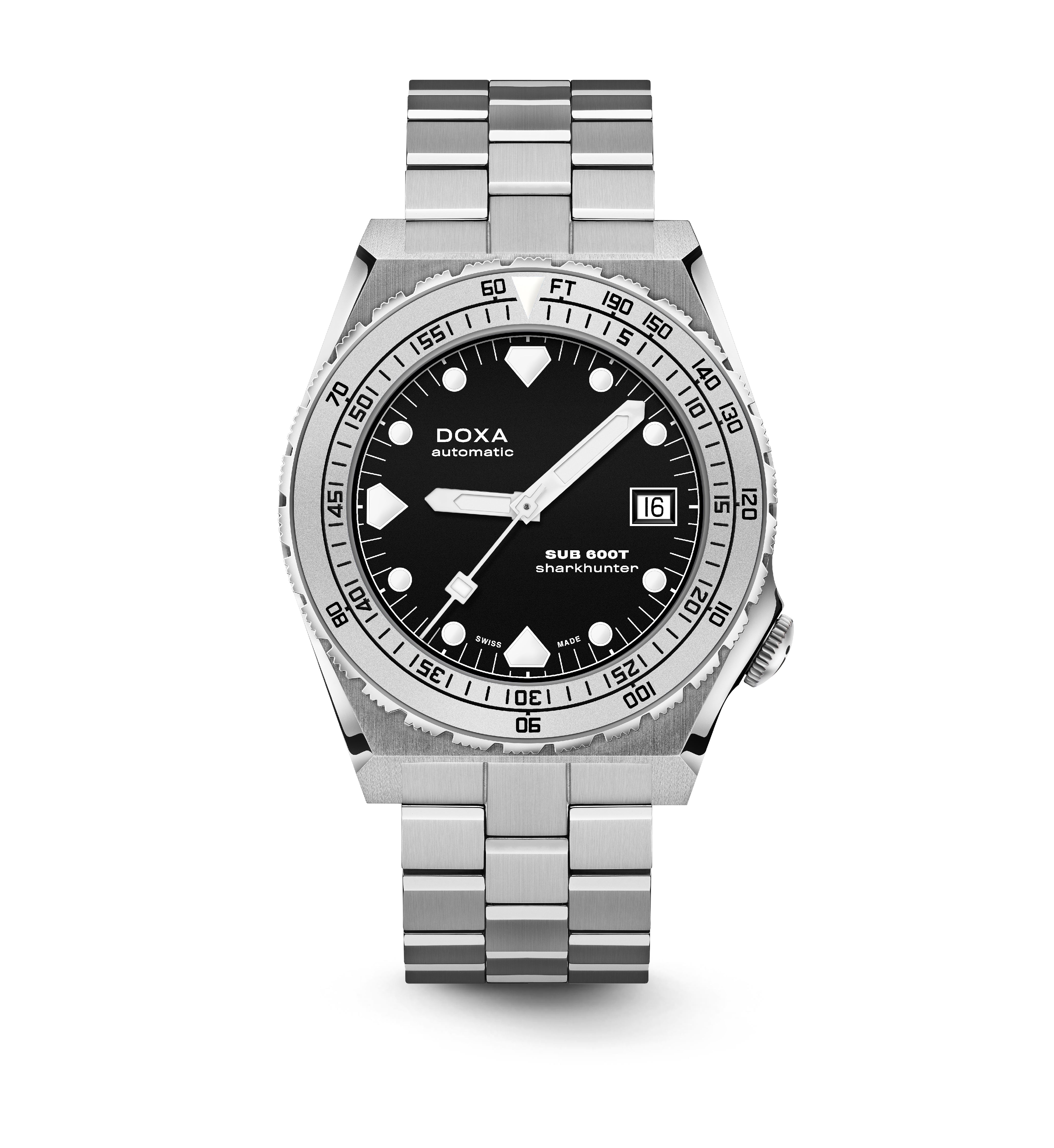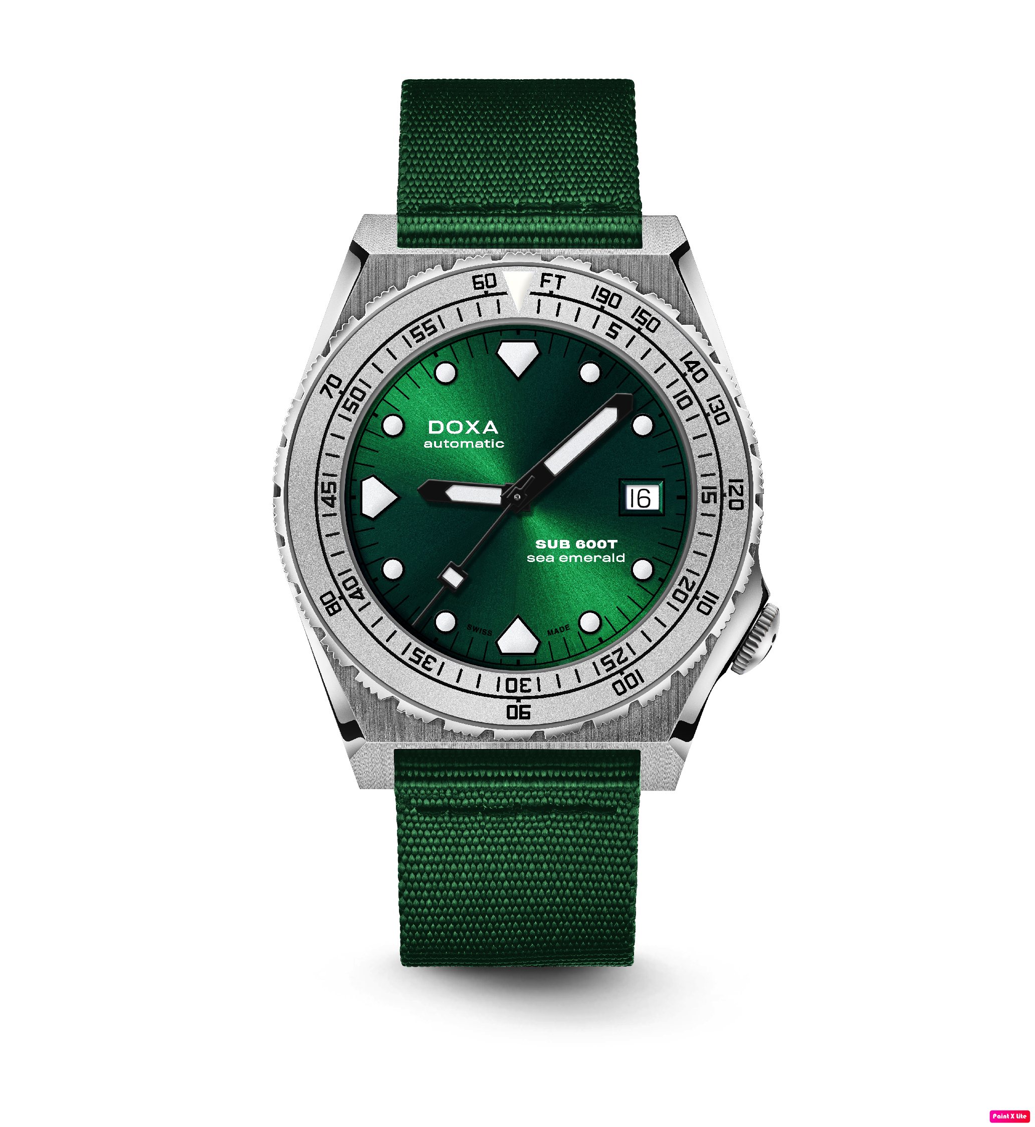 Todas as indicações relacionadas ao mergulho são revestidas com Super-LumiNova® luminescente, incluindo os marcadores distintos de 'dente de tubarão' às 3, 6, 9 e 12 horas, para uma legibilidade ideal em condições de pouca luz. Esta coleção está disponível com uma bracelete estilo NATO tom sobre tom para combinar com a cor do mostrador ou com a nova pulseira de aço inoxidável 316L que traz um toque 'vintage moderno' à coleção DOXA. A bracelete NATO possui uma fivela de pino para um ajuste conveniente e confortável no pulso do proprietário e nas barras de mola de libertação rápida.