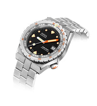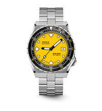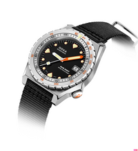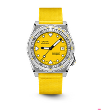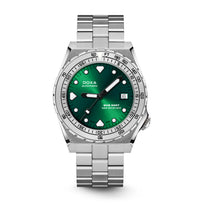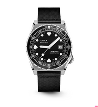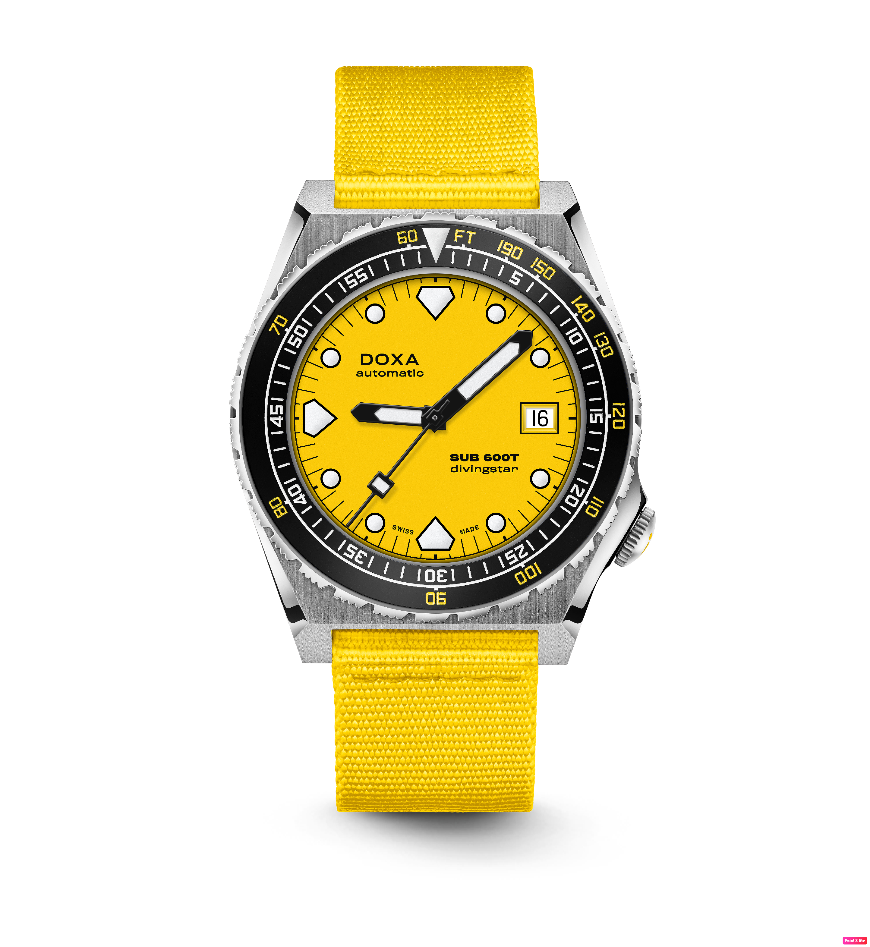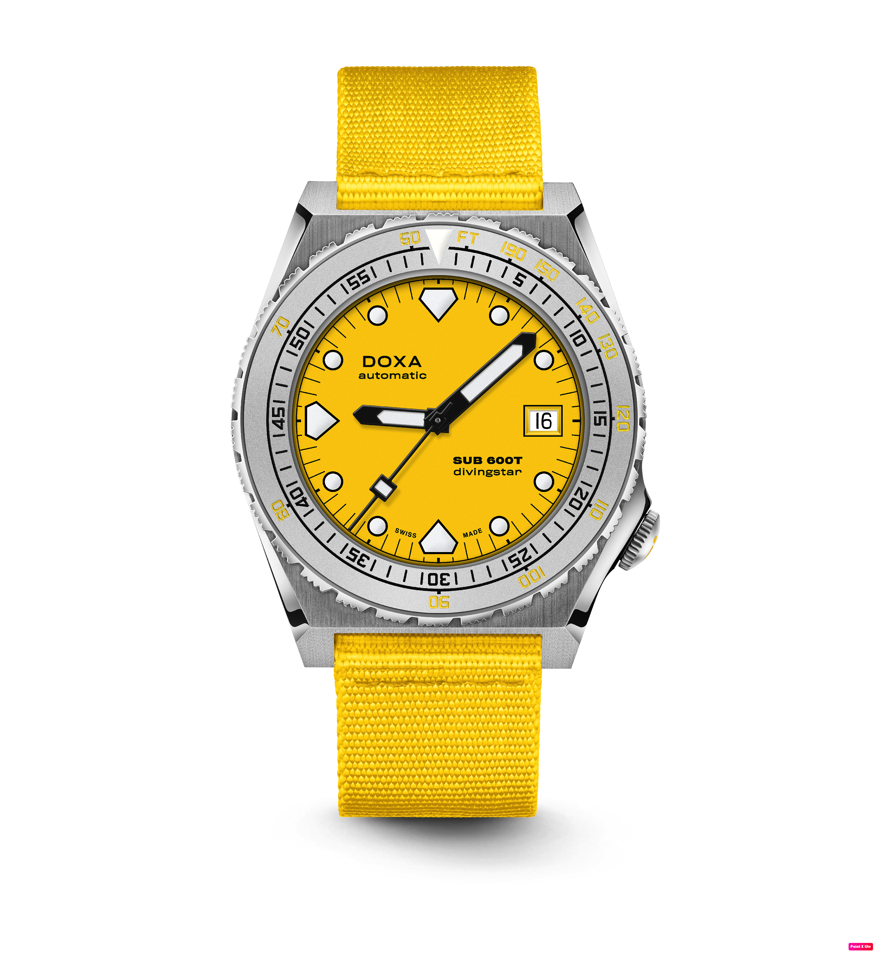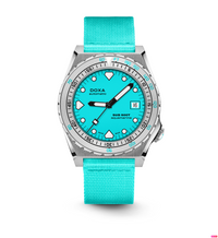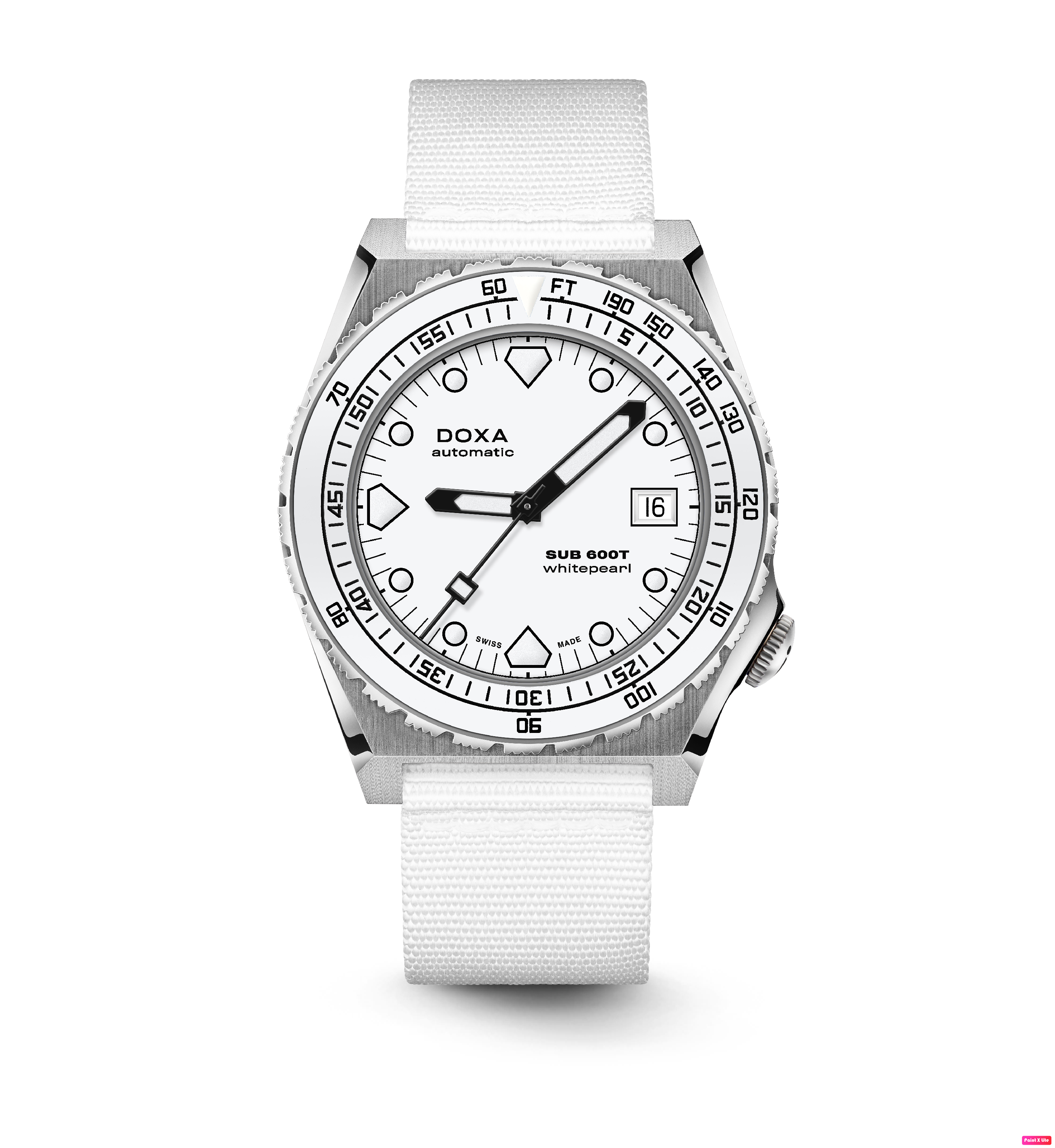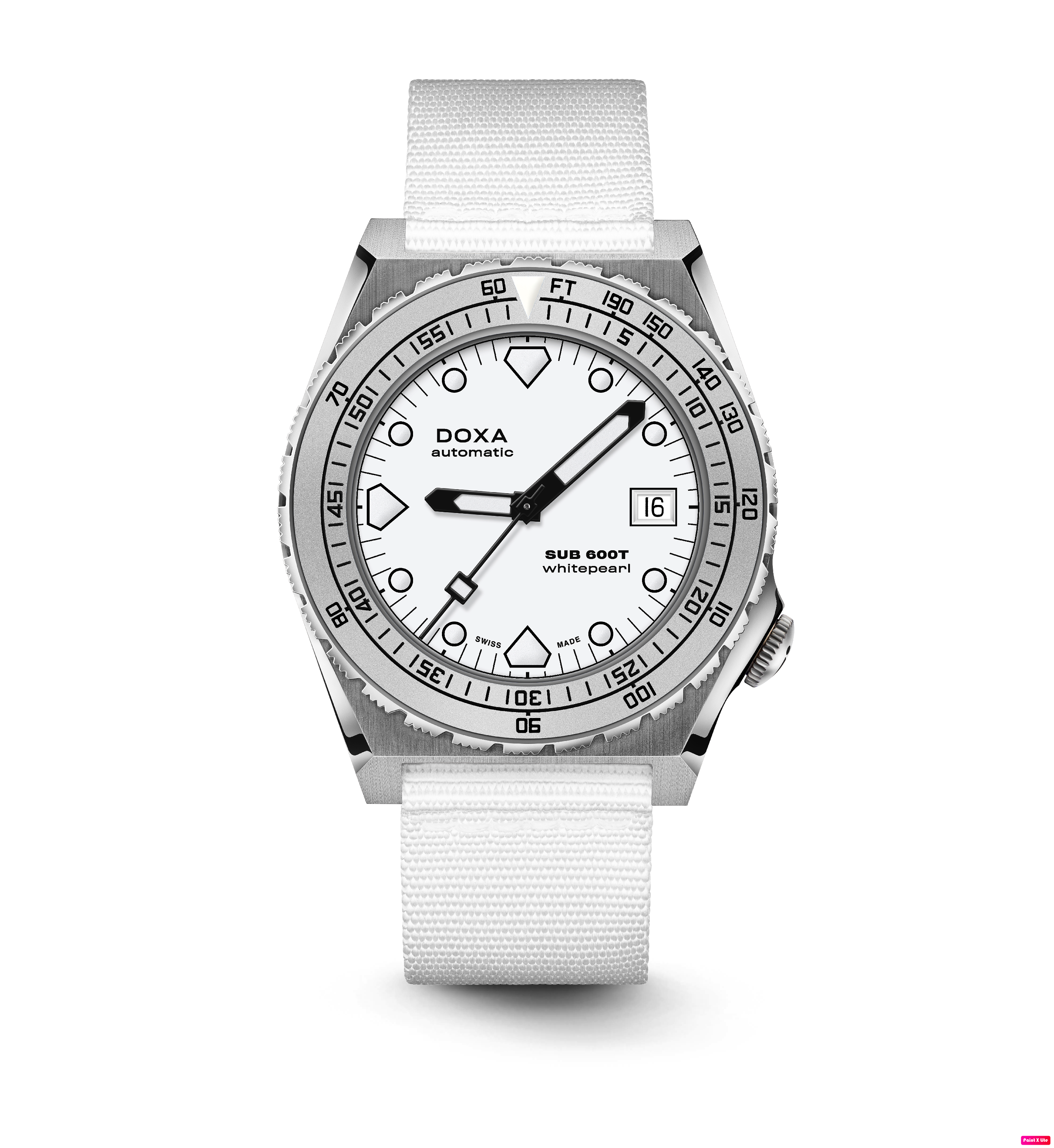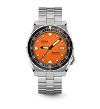 Todas as indicações relacionadas ao mergulho são revestidas com Super-LumiNova® luminescente, incluindo os marcadores distintos de 'dente de tubarão' às 3, 6, 9 e 12 horas, para uma legibilidade ideal em condições de pouca luz. Esta coleção está disponível com uma bracelete estilo NATO tom sobre tom para combinar com a cor do mostrador ou com a nova pulseira de aço inoxidável 316L que traz um toque 'vintage moderno' à coleção DOXA. A bracelete NATO possui uma fivela de pino para um ajuste conveniente e confortável no pulso do proprietário e nas barras de mola de libertação rápida.